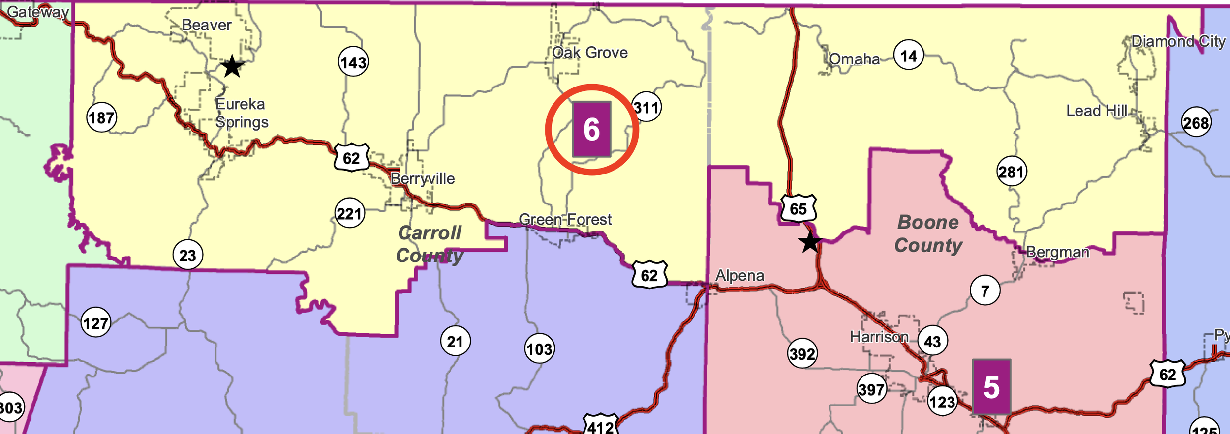 District 6 covers parts of Carroll and Boone Counties. Click the map for more detail.